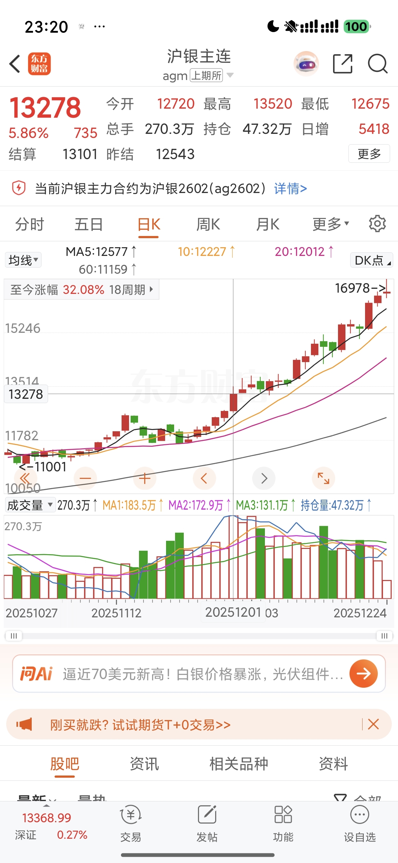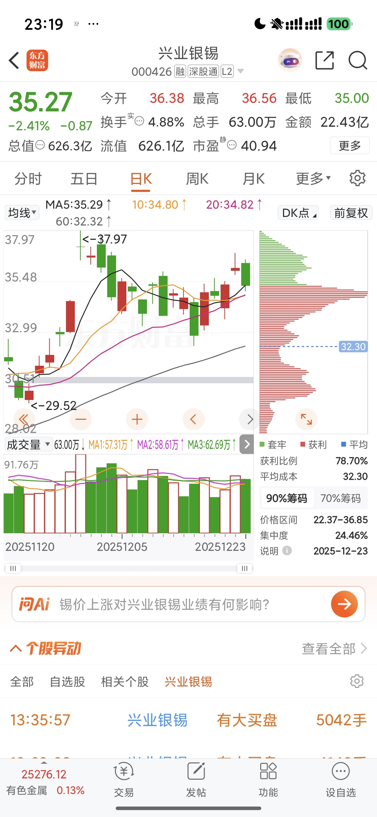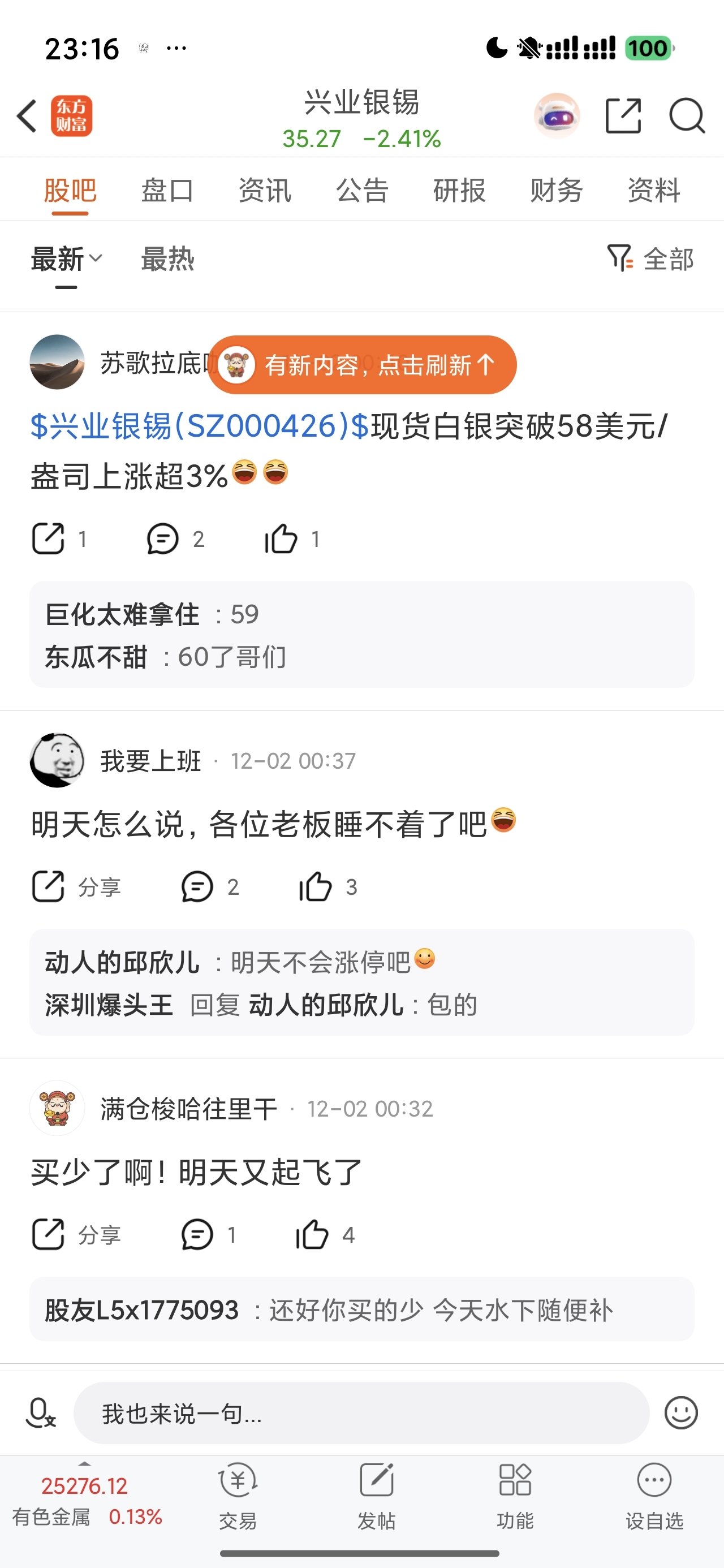 $兴业银锡(SZ000426)$ 白银这周涨过了,白银有色湖南白银,几个白银票都涨完了,说白了,这个月期货都有三十四个点,你去买场外基金随便34个点,别说场内白银基金吃八九十个随随便便了,还在吹这个票,股价38的时候,白银58也是这么狂欢,又觉得明天起飞了,又涨停了,没救了孩子,