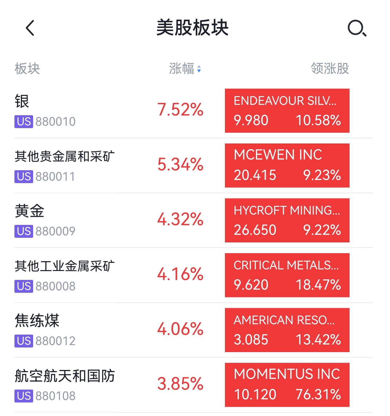 $兴业银锡(SZ000426)$ 美股开盘了,白银板块涨幅第一