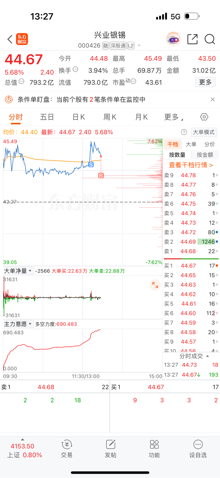 $兴业银锡(SZ000426)$ 都感谢我吧,是我止住了下跌