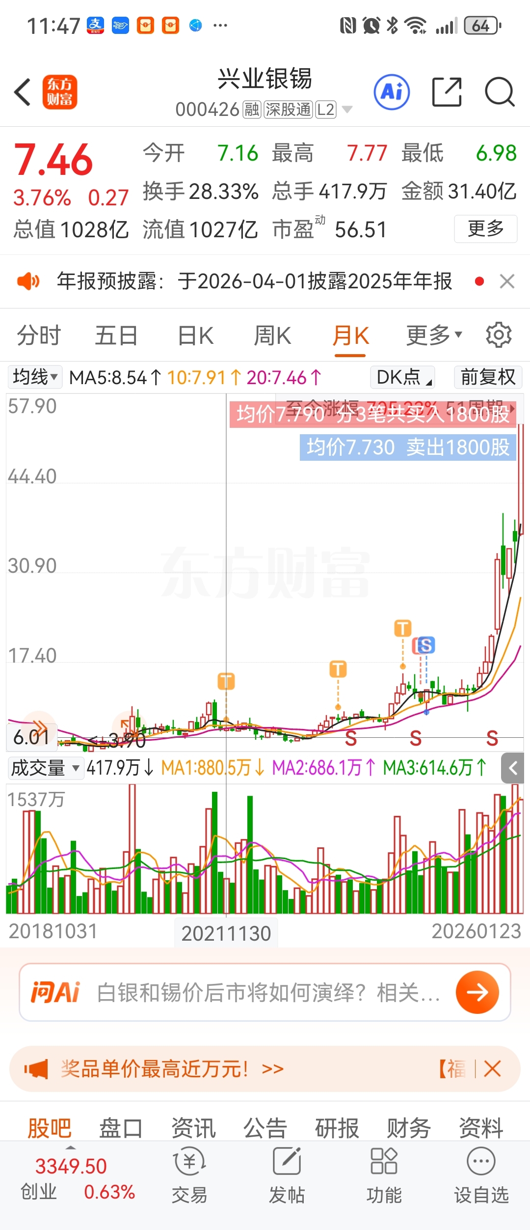 $兴业银锡(SZ000426)$ 果然我就是个大冤种