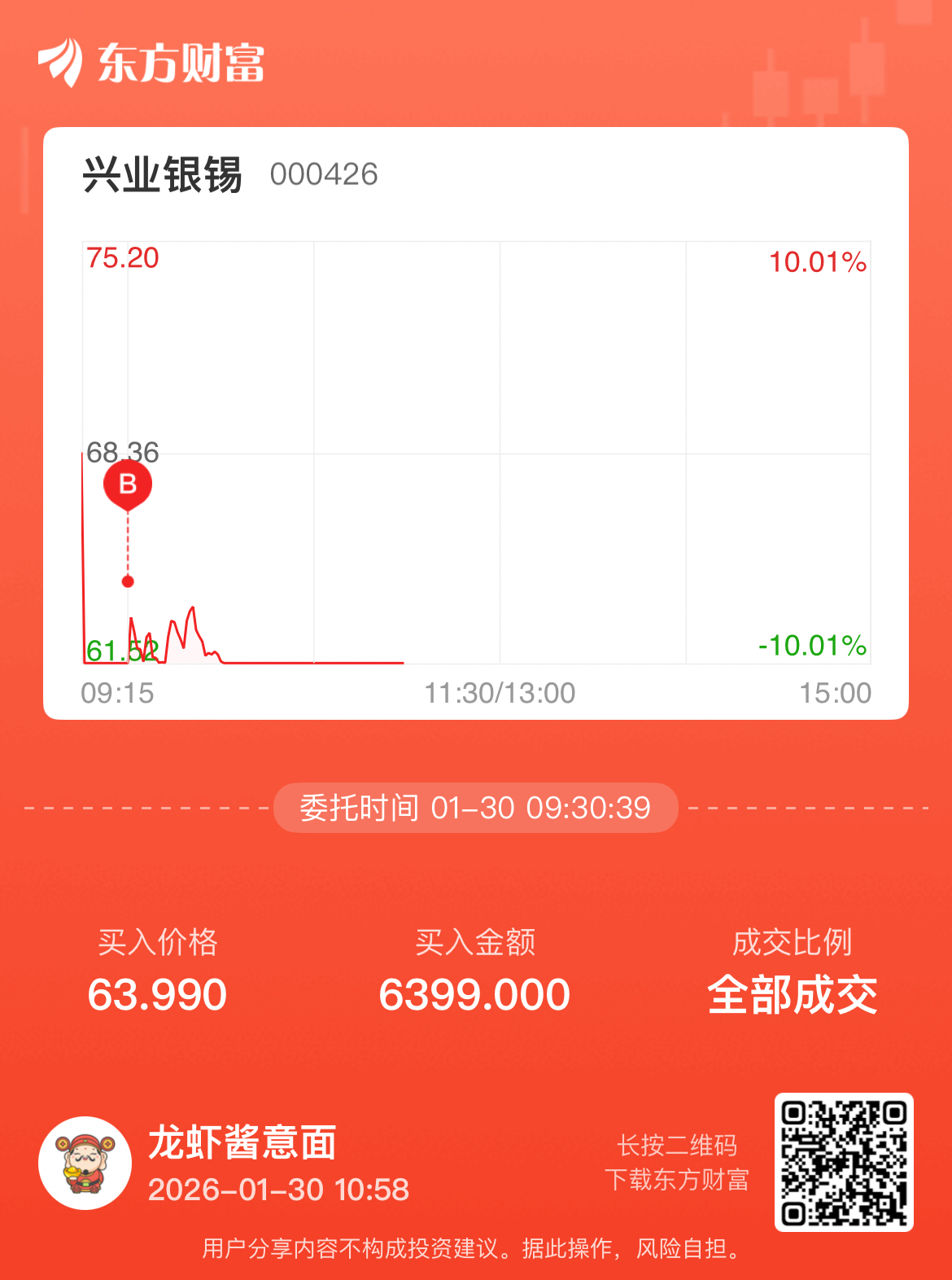 温馨提示: 1.根据《证券法》规定,禁止编造、传播虚假信息或者误导性信息,扰乱证券市场;2.用户在本社区发表的所有资料、言论等仅代表个人观点,与本网站立场无关,不对您构成任何投资建议。用户应基于自己的独立判断,自行决定证券投资并承担相应风险。《东方财富社区管理规定》