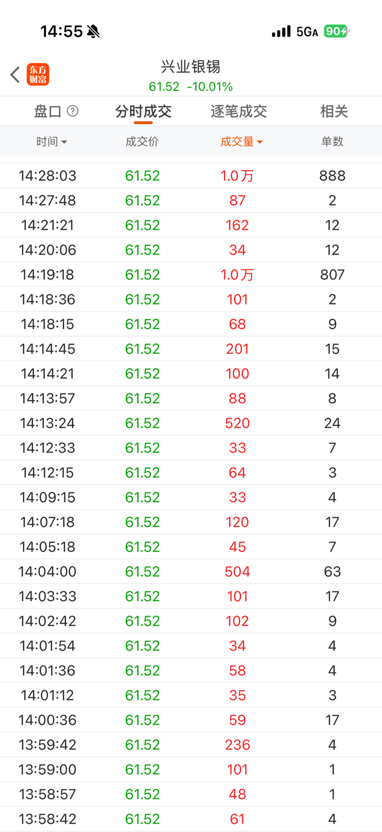 $兴业银锡(SZ000426)$ 14:28买的888单