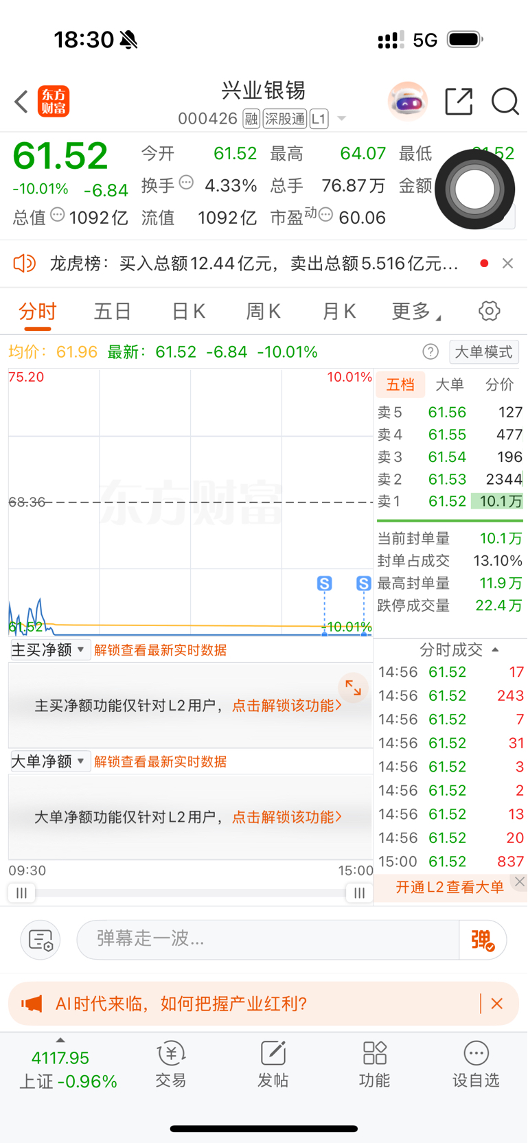 $兴业银锡(SZ000426)$ 幸好尾盘放我出去了哎