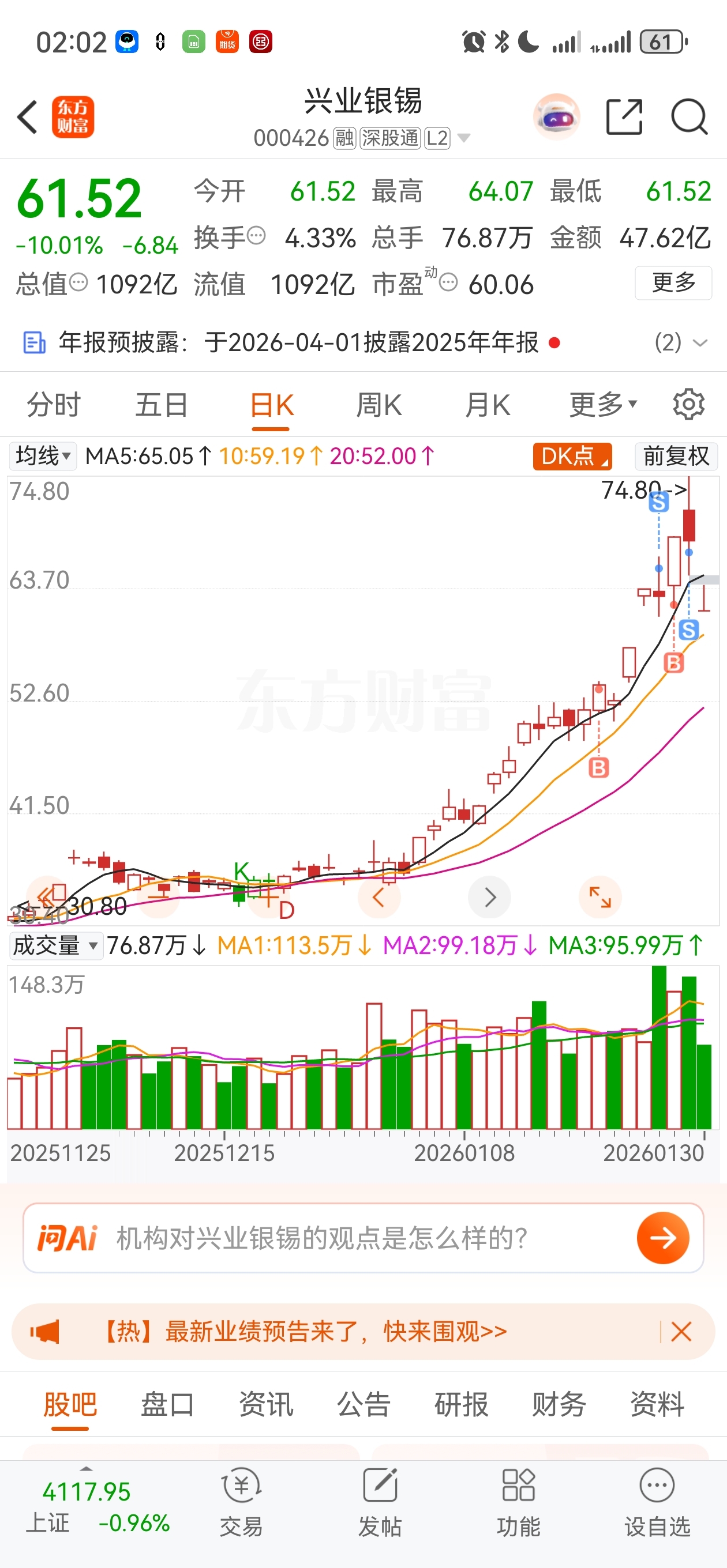 银锡(SZ000426)$ 回来看看兄弟们,你们还好嘛