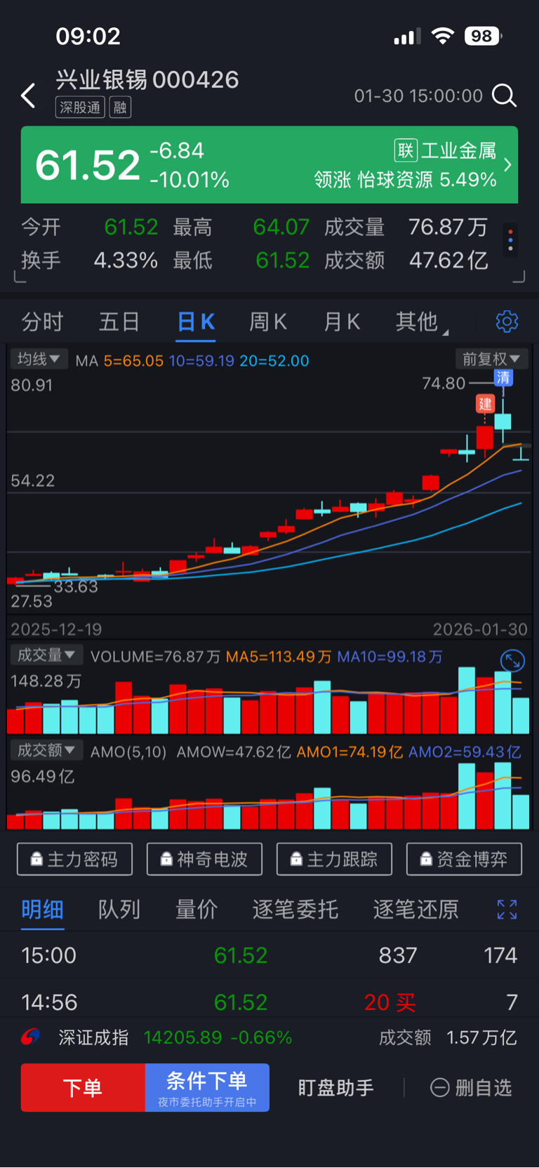 $兴业银锡(SZ000426)$ 太可怕了,幸亏周三一早买周四一早卖了,赚了十二个点。尾盘还想买回来克制了自己没买。