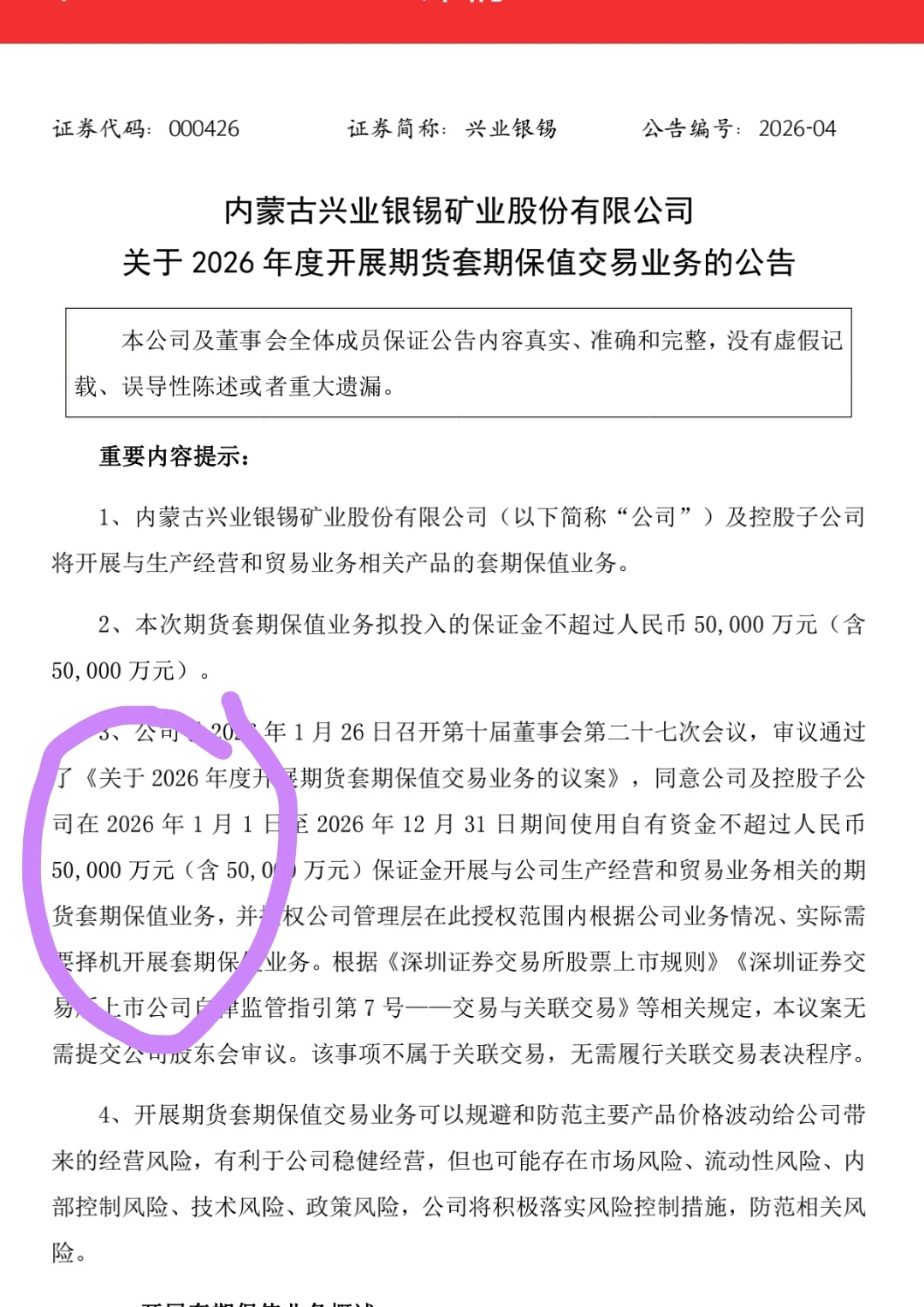 $兴业银锡(SZ000426)$ 套保5亿