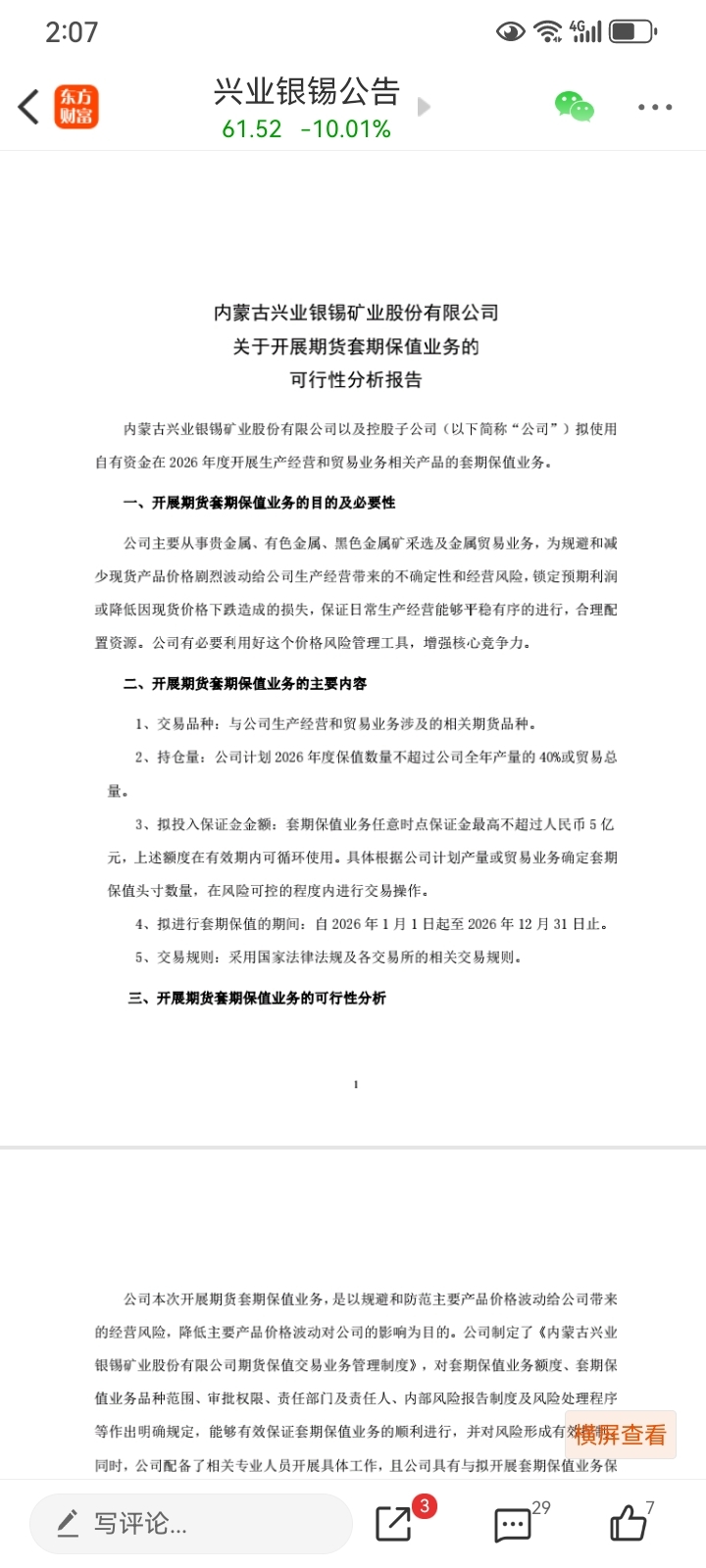 $兴业银锡(SZ000426)$ 公告里,有套保,周一会不会红?