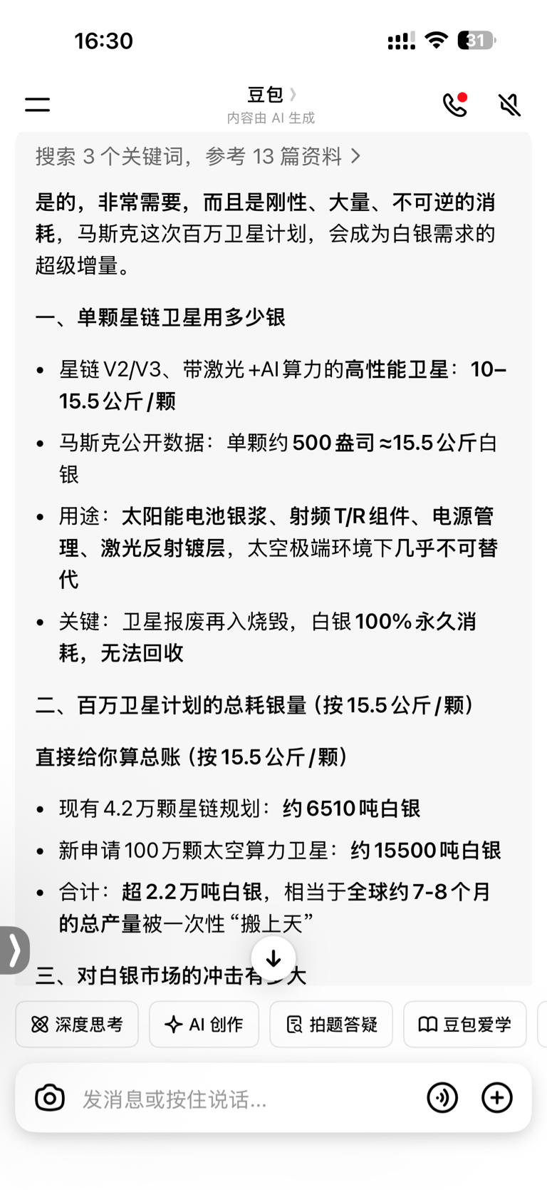 $兴业银锡(SZ000426)$ 同志们,给你们一个可能性的利好。马斯克不是2.1号申请100万颗卫星,卫星需要白银。或者有可能有合作或者大量买白银的需要,机构们才在周五进的?