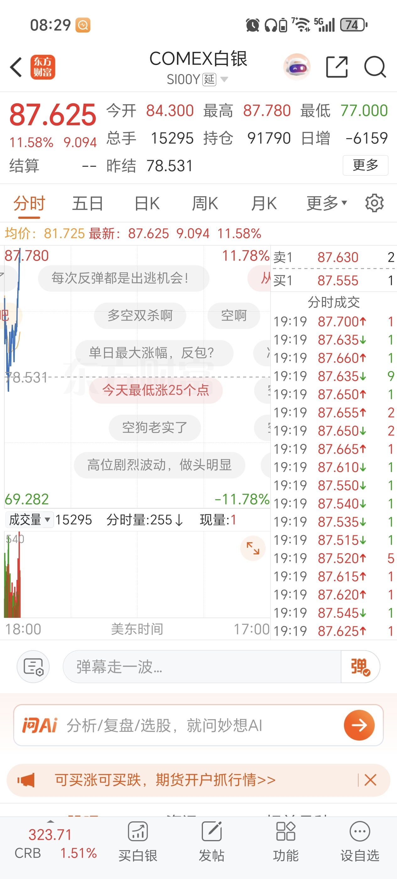 $兴业银锡(SZ000426)$ 白银期货12个点了喂
