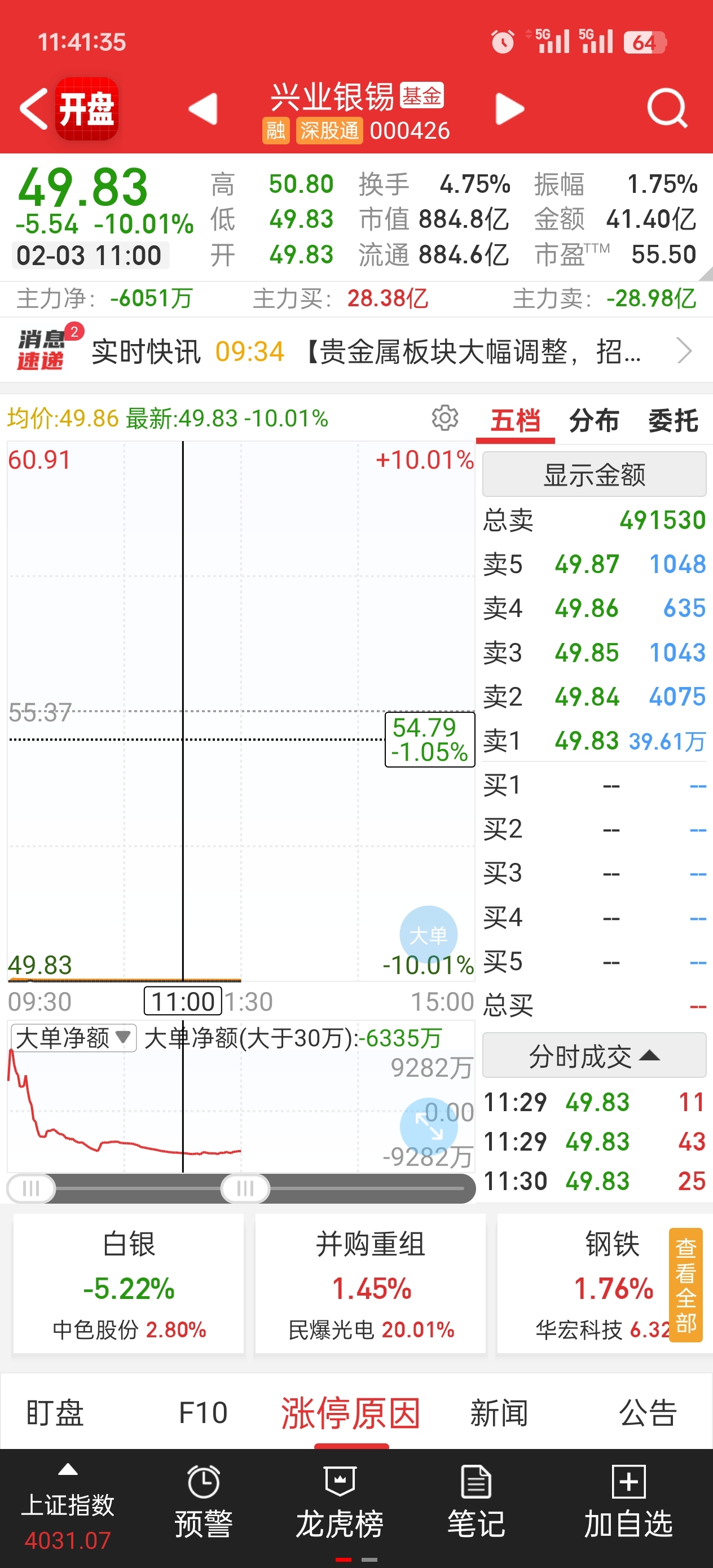 $兴业银锡(SZ000426)$ 十一点还有40万,现在只有20万,是不是要开了