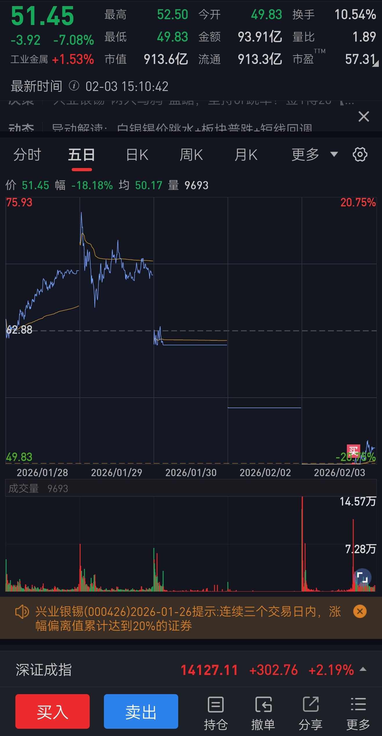 $兴业银锡(SZ000426)$ 今天刚来。里面的兄弟能不能给个建议?明天是走还是留?