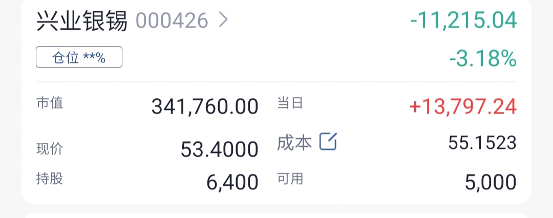 $兴业银锡(SZ000426)$ 昨天补仓了,