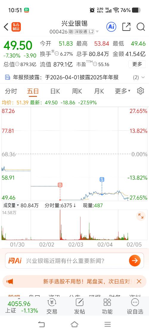 $兴业银锡(SZ000426)$  前天进,昨天出,今天恐慌局!