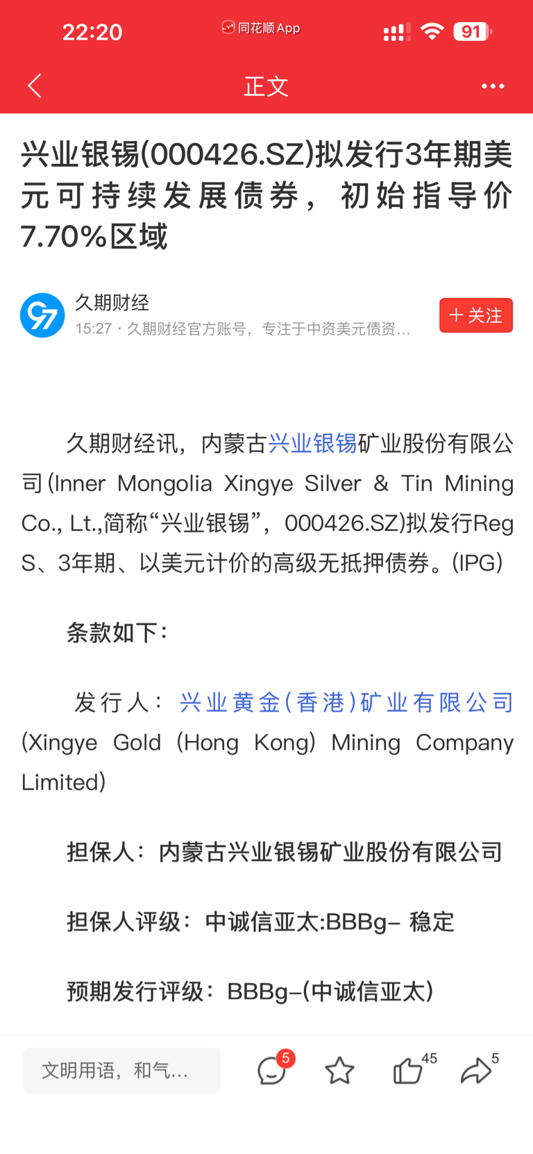$兴业银锡(SZ000426)$
