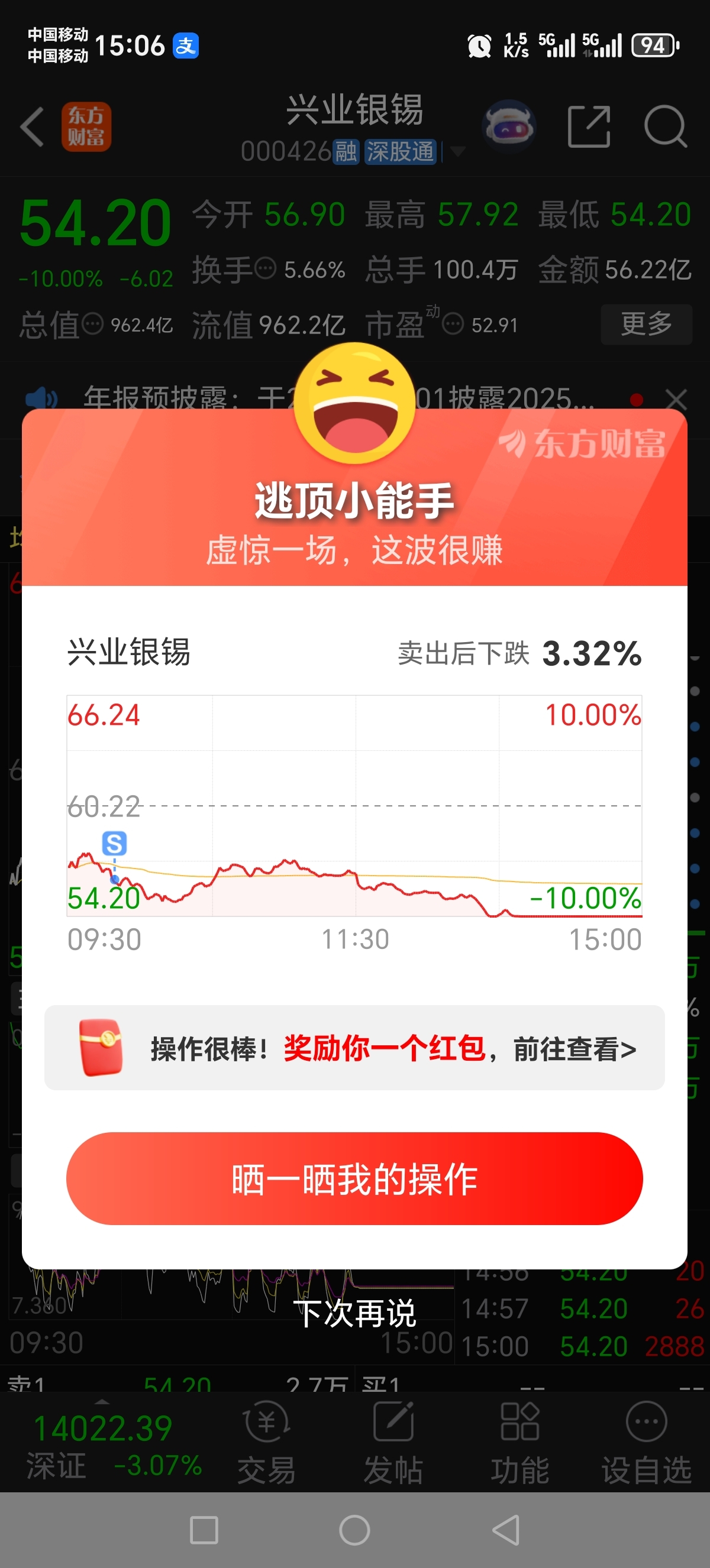 $兴业银锡(SZ000426)$ 只能说跑得快!亏了8千多!!
