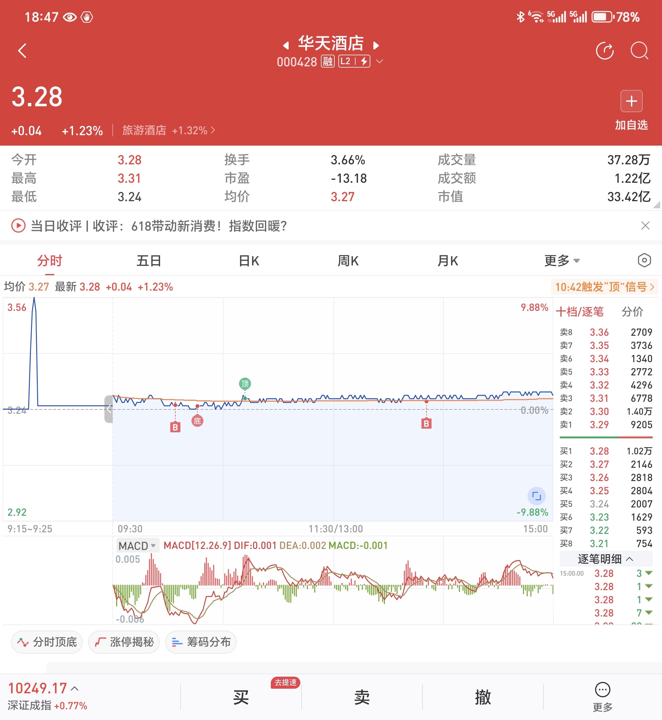 $华天酒店(SZ000428)$ 今天进的,希望明天大涨