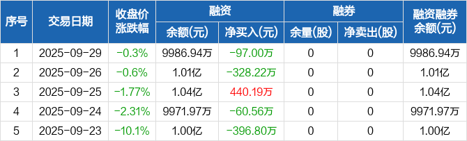 华天酒店:融资净偿还97万元,融资余额9986.94万元(09-29)