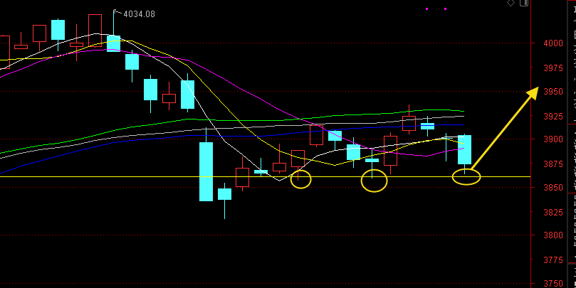 因为盘前北哥就预判今天有回踩动作,只不过这个回踩比预想的要深一些,回测12.5日中阳了,但不管怎样,关键的3863点还是抗住了。那么,回踩后都是反弹,只不过晚一天来而已。下图自己看,不用多解释,直接给结论:明天看上涨!