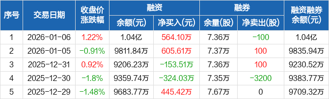 华天酒店:融资净买入564.1万元,融资余额1.04亿元(01-06)