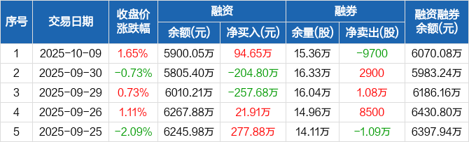粤高速A:融资净买入94.65万元,融资余额5900.05万元(10-09)
