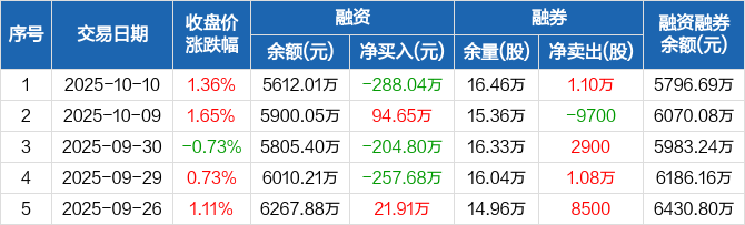 粤高速A:融资净偿还288.04万元,融资余额5612.01万元(10-10)