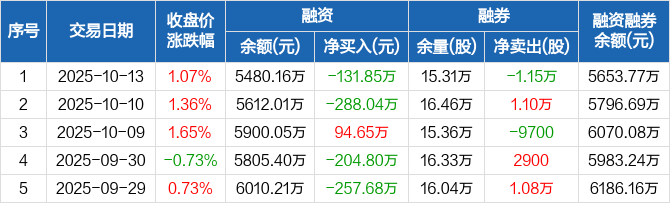 粤高速A:融资净偿还131.85万元,融资余额5480.16万元(10-13)