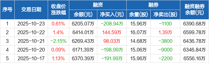 粤高速A:融资净偿还208.94万元,融资余额6205.07万元(10-23)