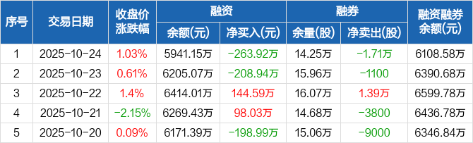 粤高速A:融资净偿还263.92万元,融资余额5941.15万元(10-24)