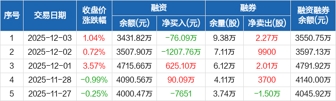 粤高速A:融资净偿还76.09万元,融资余额3431.82万元(12-03)