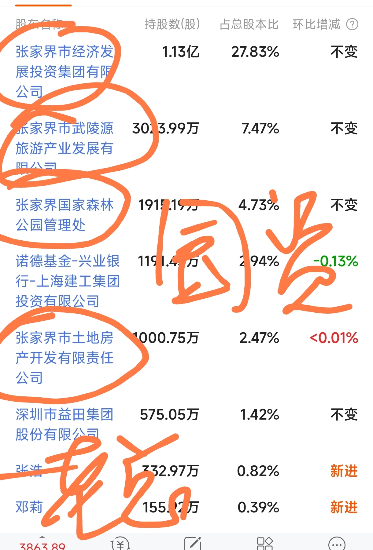 $ST张家界(SZ000430)$ 国资背景的公司占了42%作业,房地产开发的增仓不少。看看下周三季报的情况再说吧