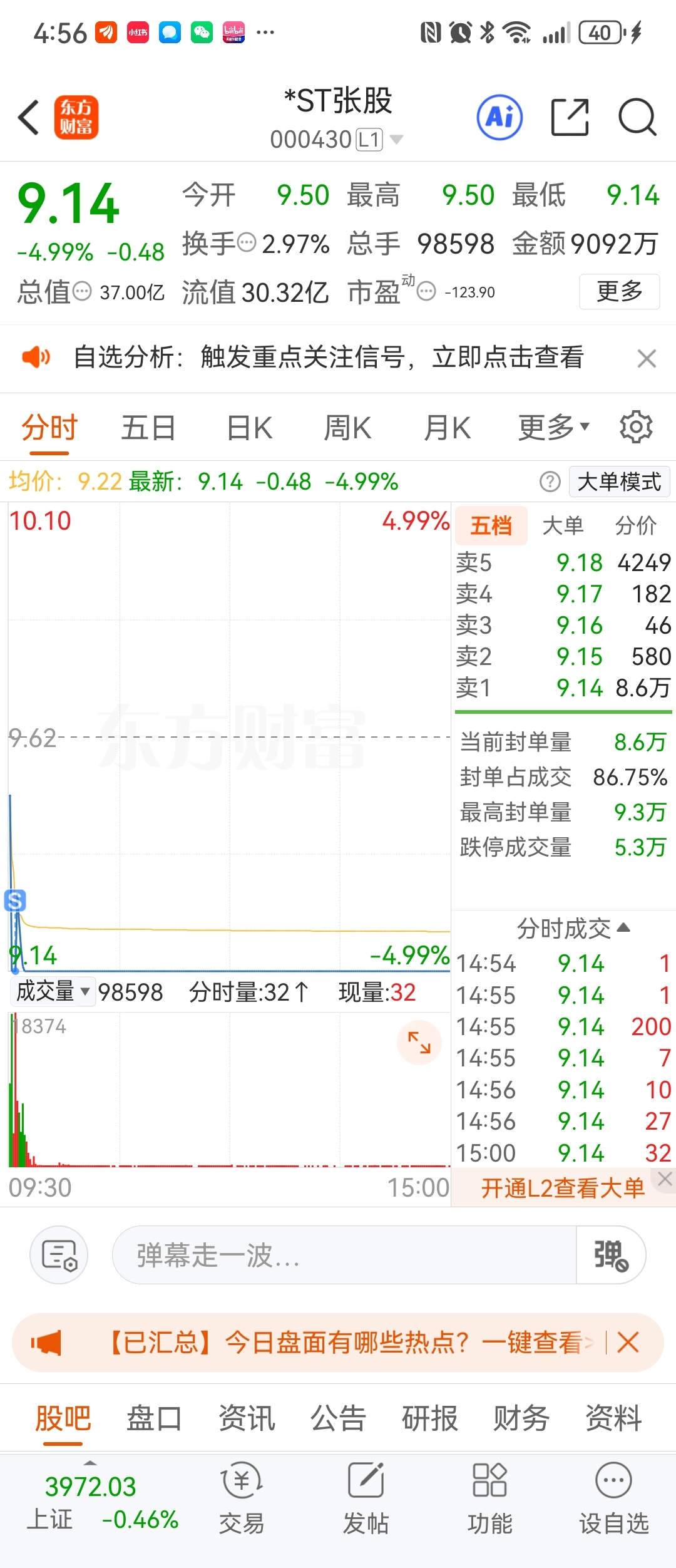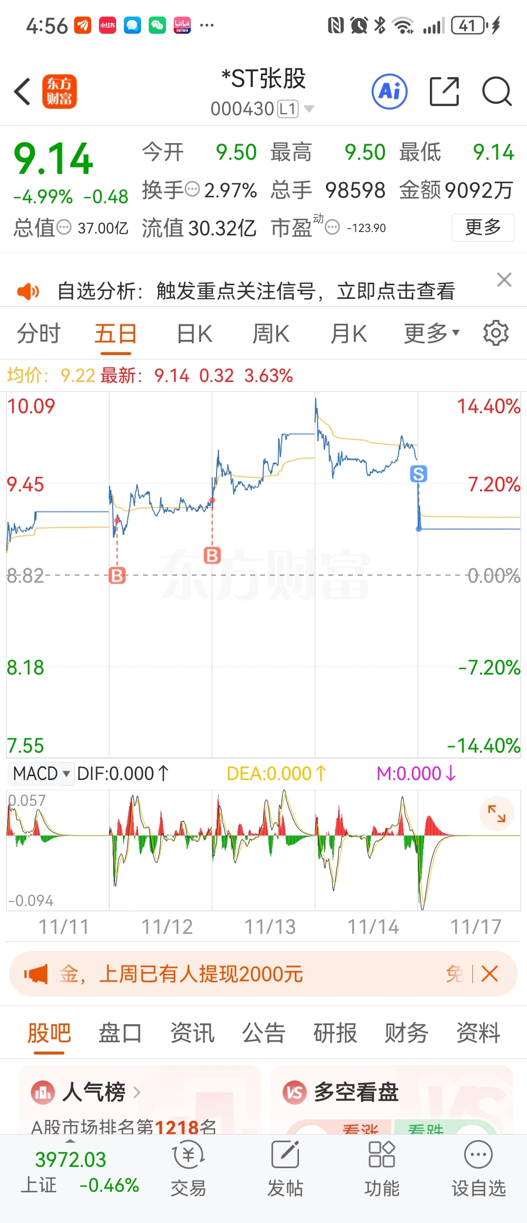 $*ST张股(SZ000430)$ 割了割了,以后再也不出来打野买这种垃圾杂毛股,还是回到我跨年总龙头ST东易大帝里躺着