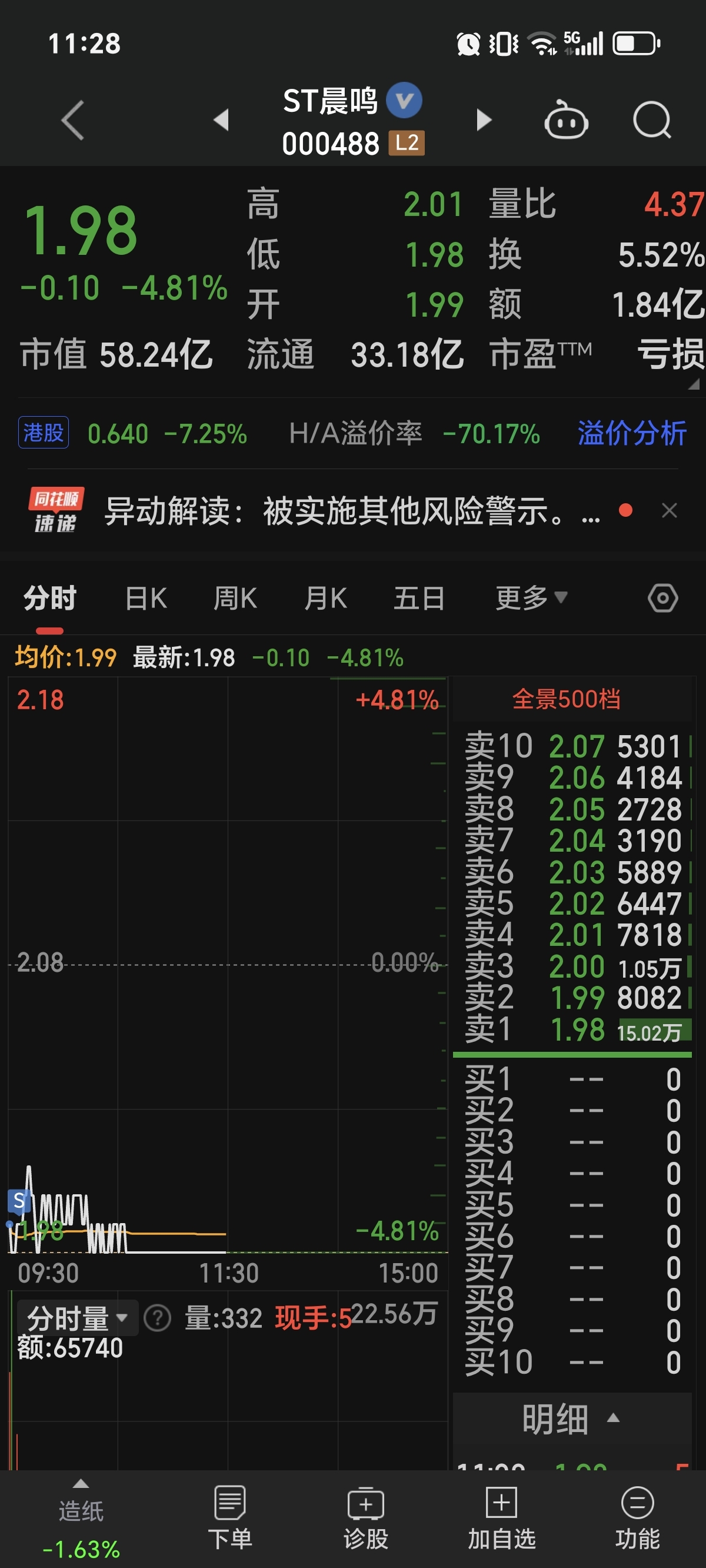 $ST晨鸣(SZ000488)$ 昨天跌停买,今天跌停卖,牛欢喜!