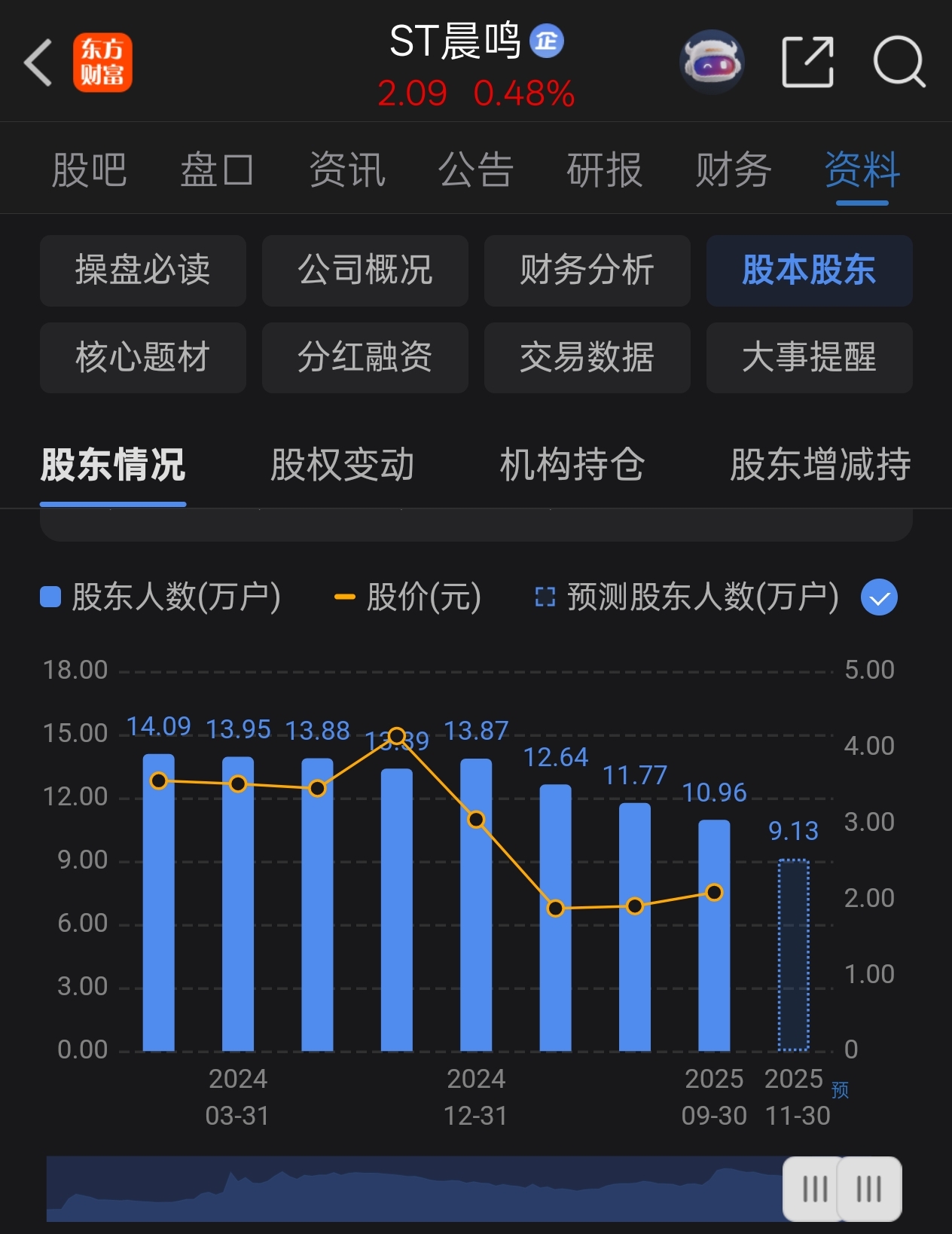 $ST晨鸣(SZ000488)$ 股东数极速衰减