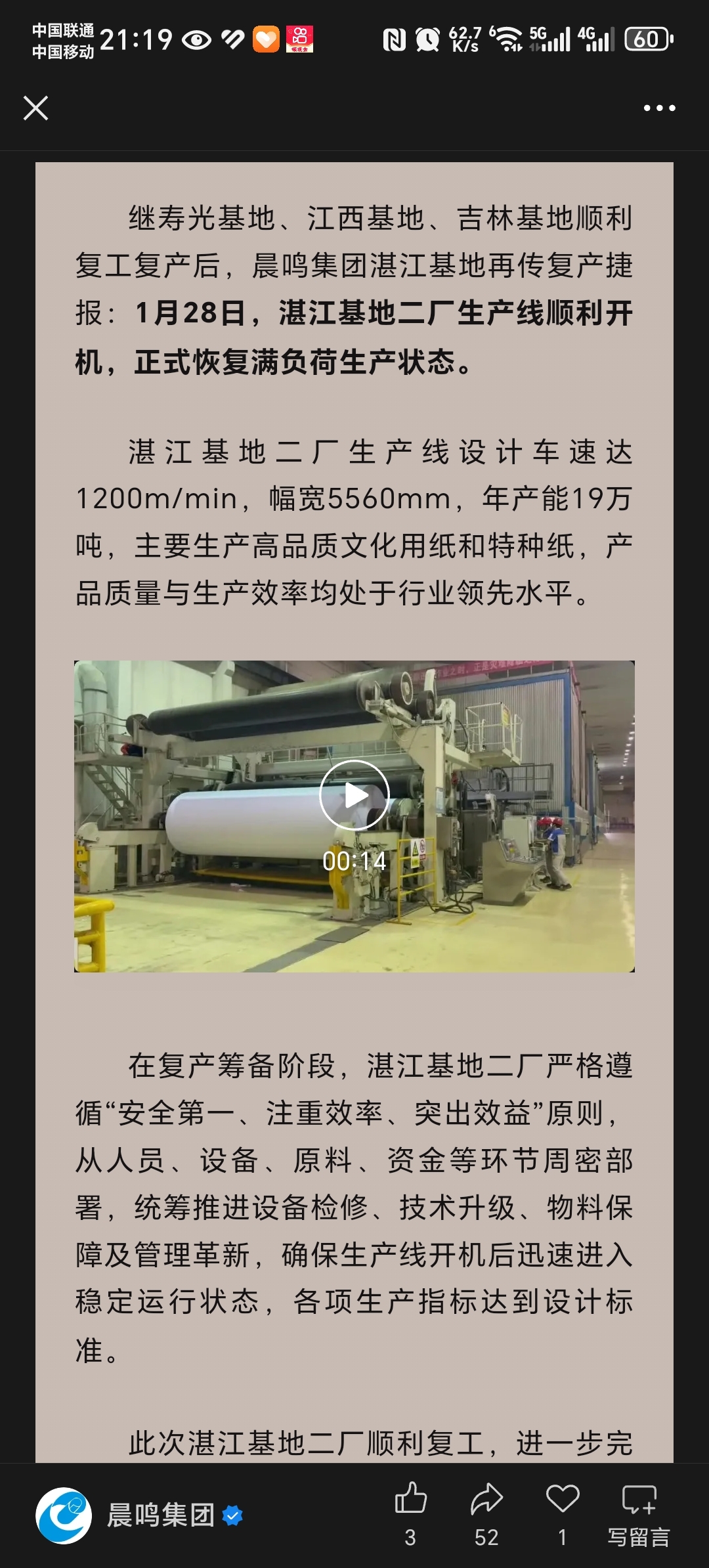 $ST晨鸣(SZ000488)$ 开机了