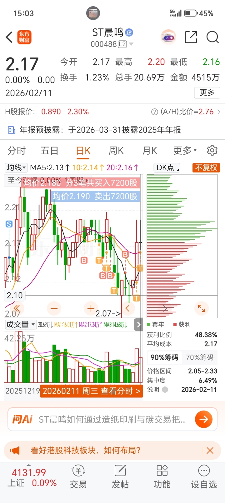 $ST晨鸣(SZ000488)$ 一分钱玩一天,这 LJ股