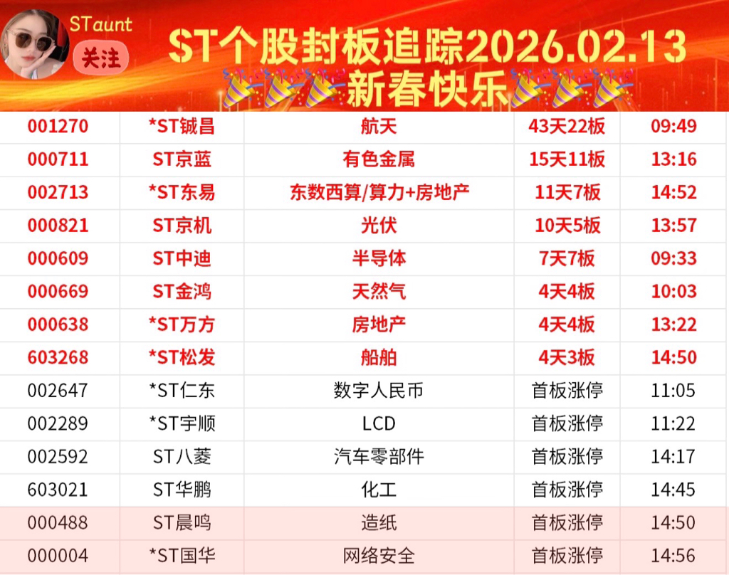 ST个股封板追踪E