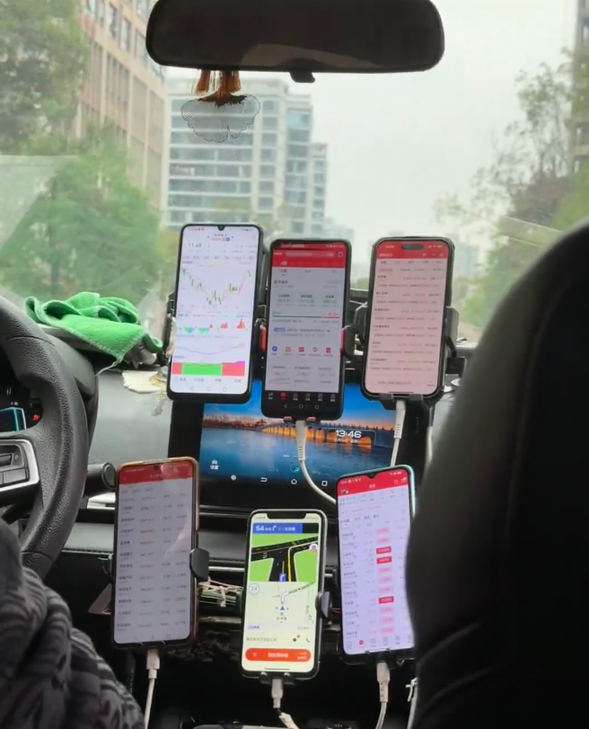 早上在武商梦时代旁边打车,看到这个网约车上居然这么多手机: