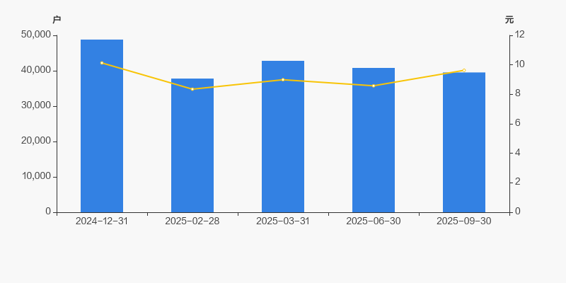 2024年12月31日至今,公司股东户数显著下降,区间跌幅为19.04%。2024年12月31日至2025年9月30日区间股价下降4.96%。