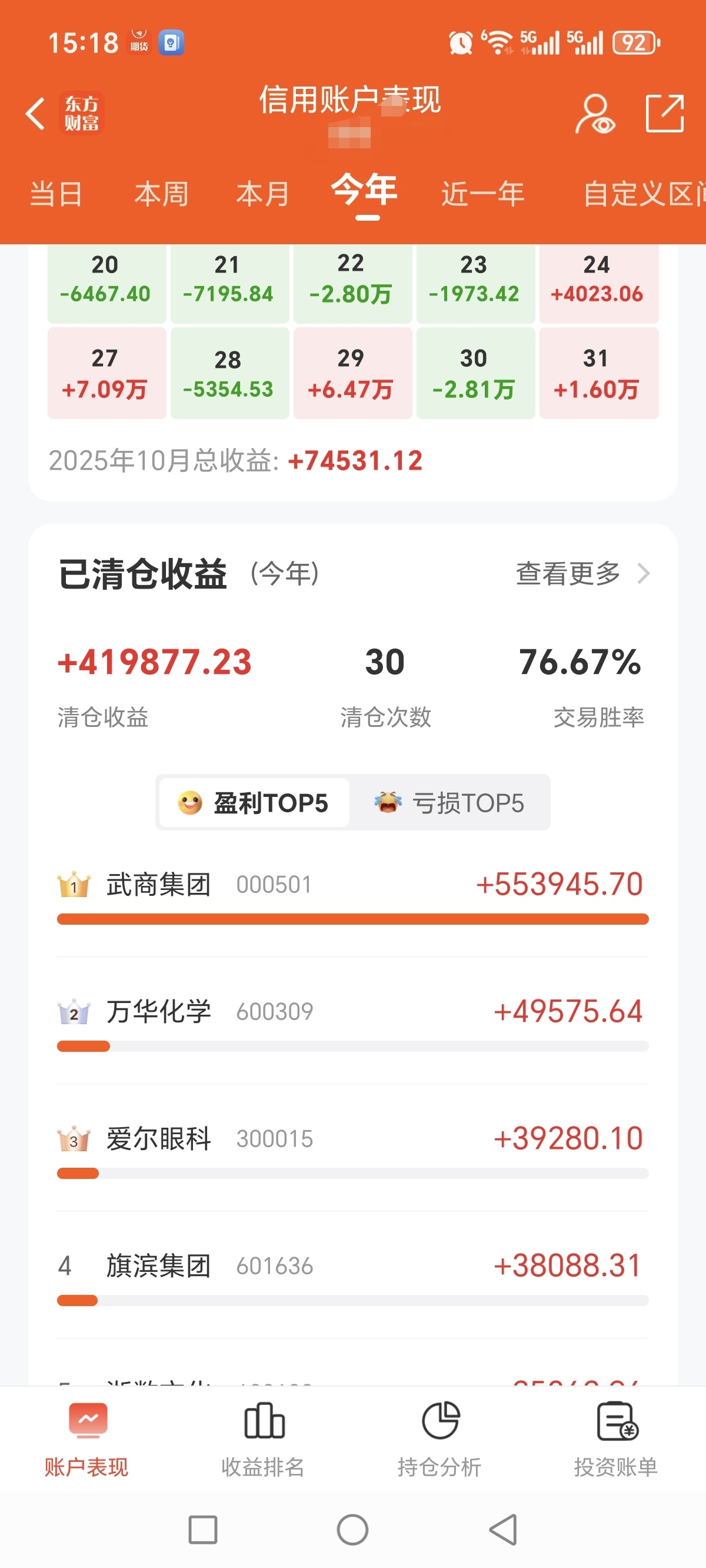 10月31日,下午收盘,今日盈利1.6w!本账户10月盈利7.5w!
