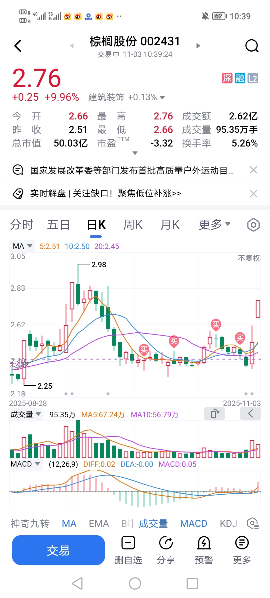 $武商集团(SZ000501)$  一边割武商一边加棕榈