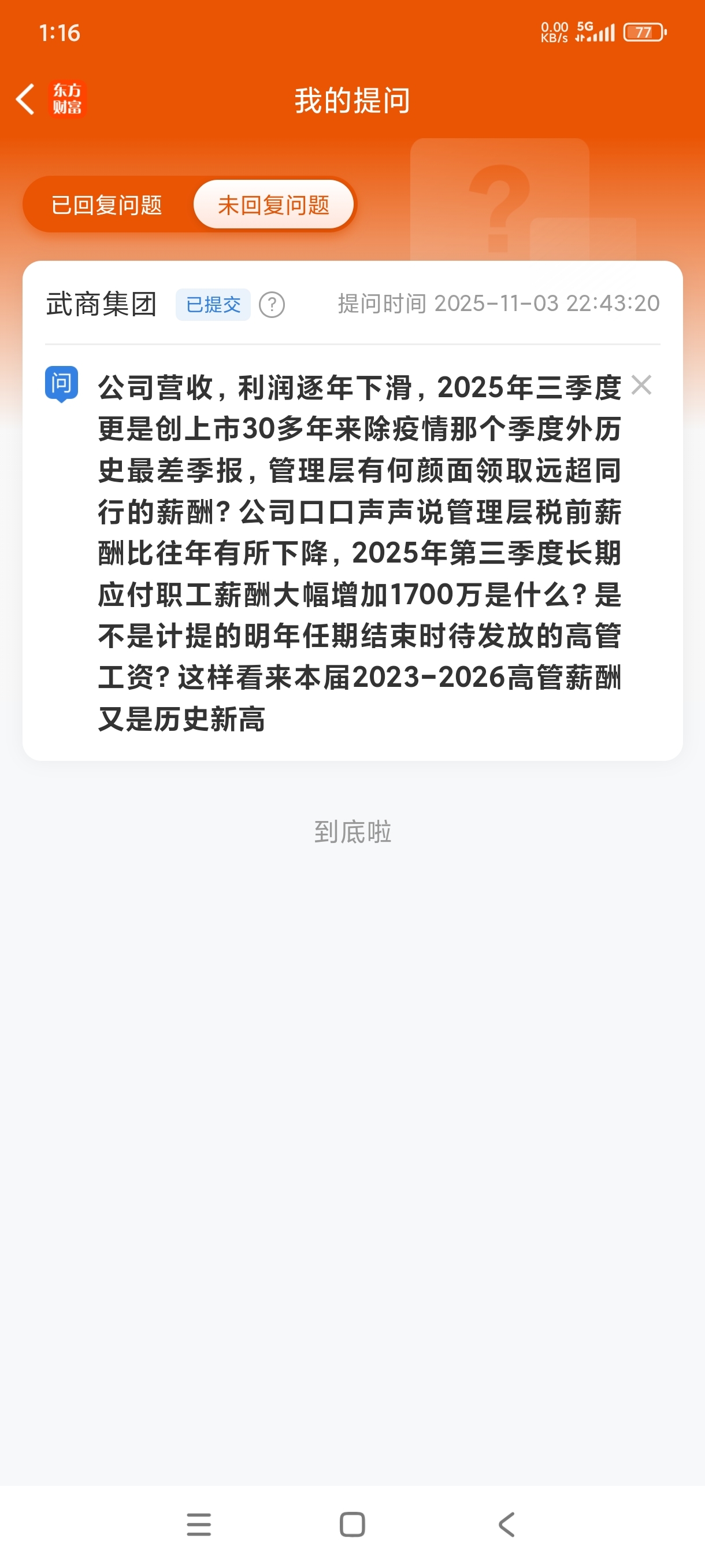 $武商集团(SZ000501)$ 董秘天天翻来覆去回答重复问题,这个就避而不答了?
