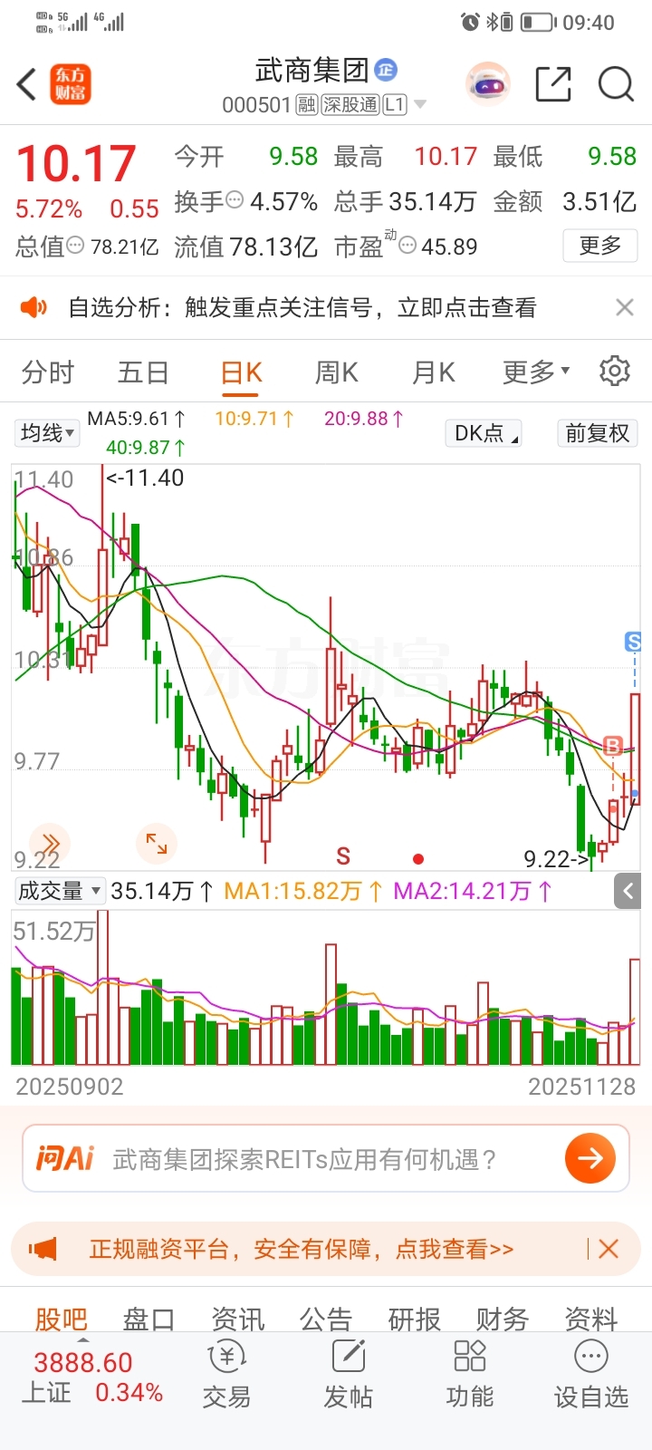 $武商集团(SZ000501)$ 没能拿住,卖飞了