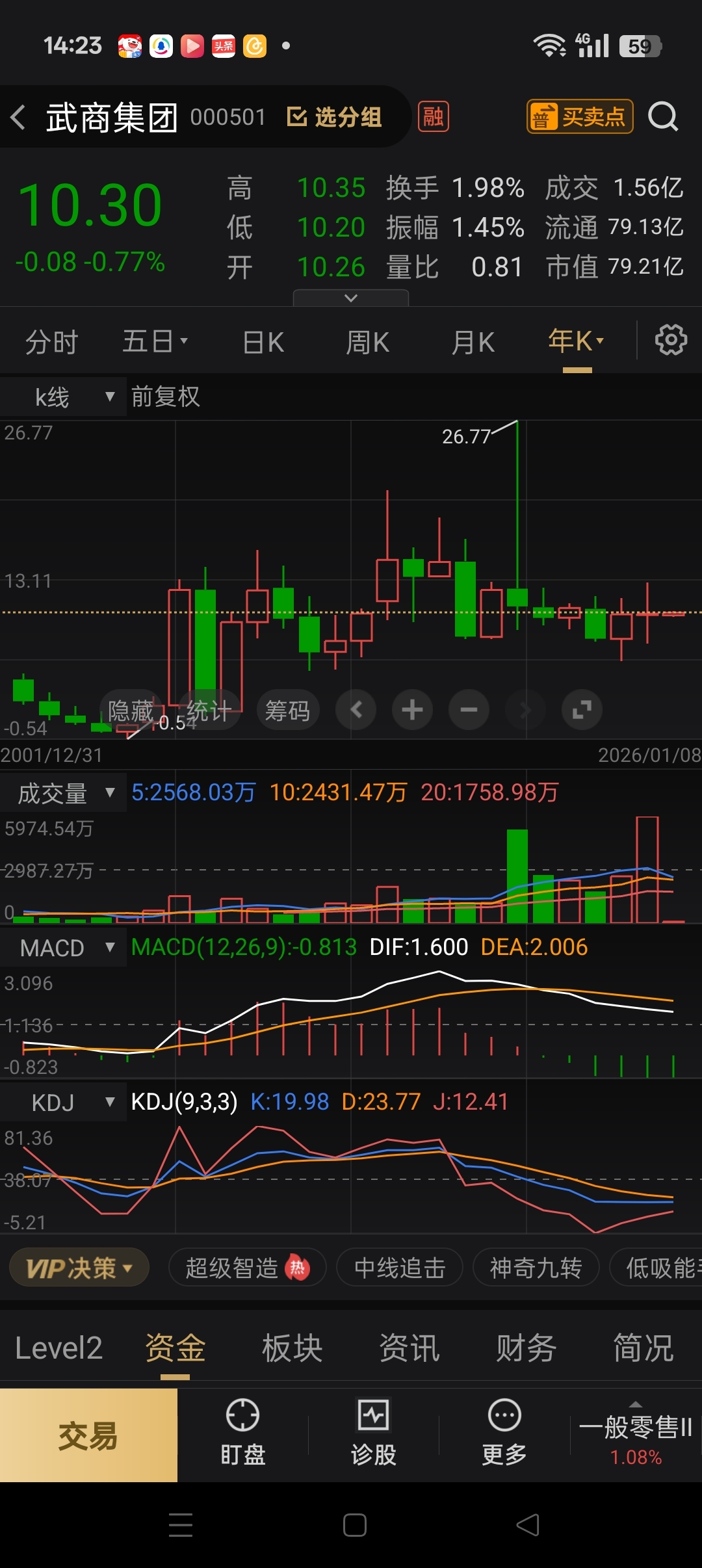 $武商集团(SZ000501)$ 三年年线基本持平。