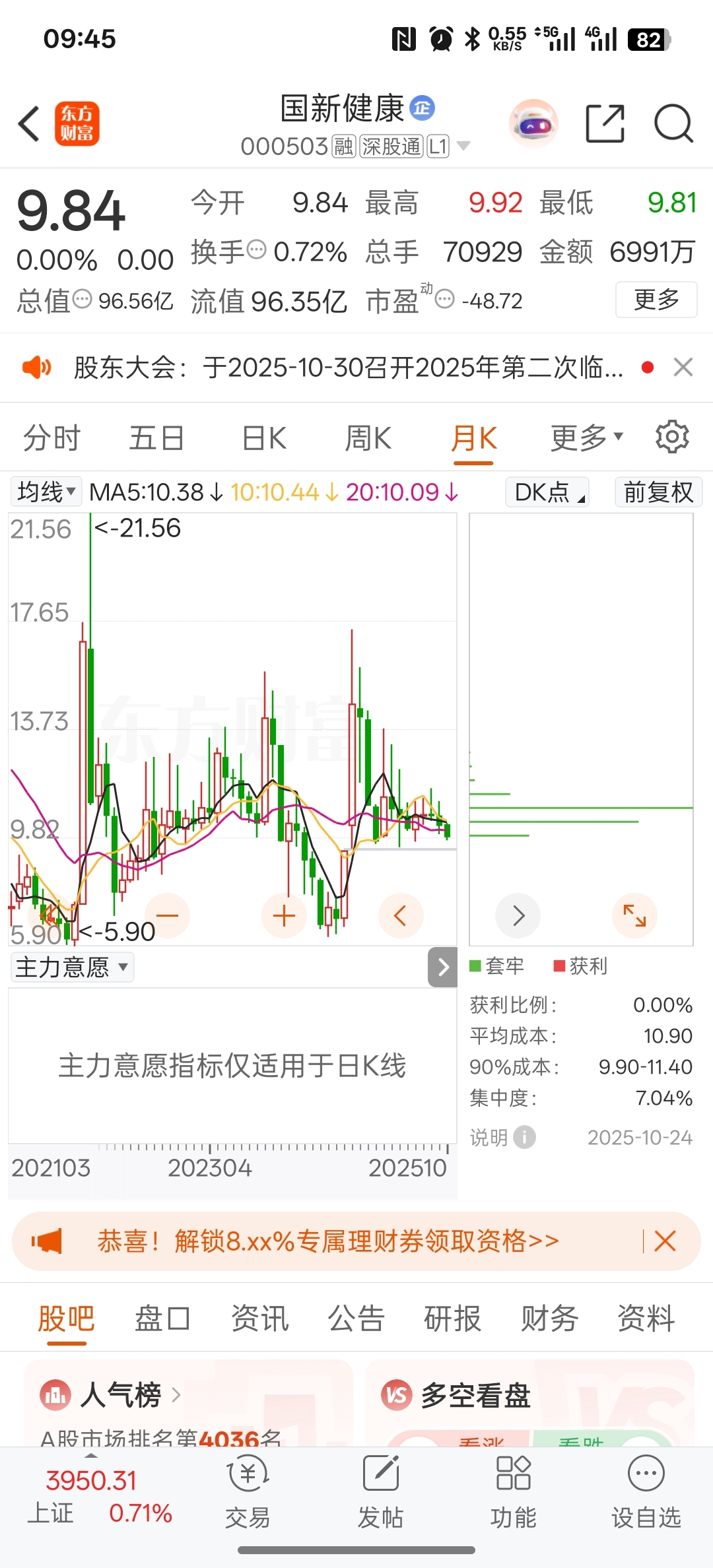 十月大盘100%获利,国新0%获利,到底是什么鬼