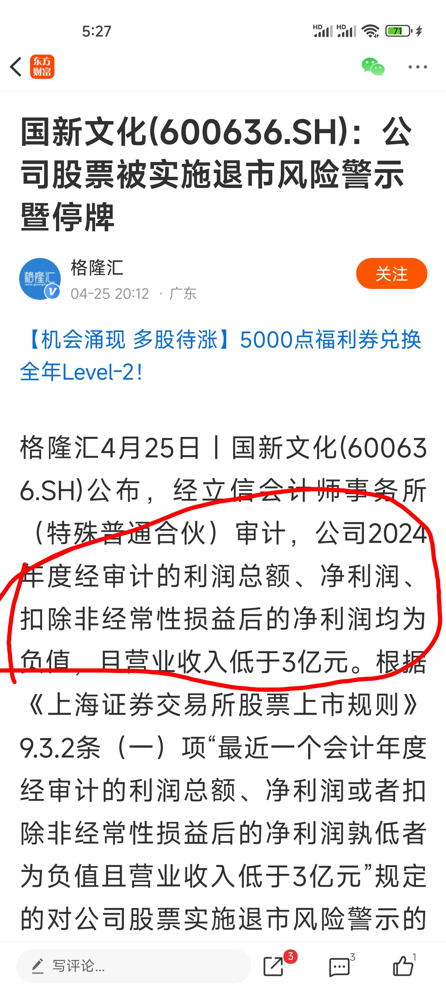 有的人以为是央国企就不会被st。看看国新文化,这个属于央国企吧?营收低于3亿元,