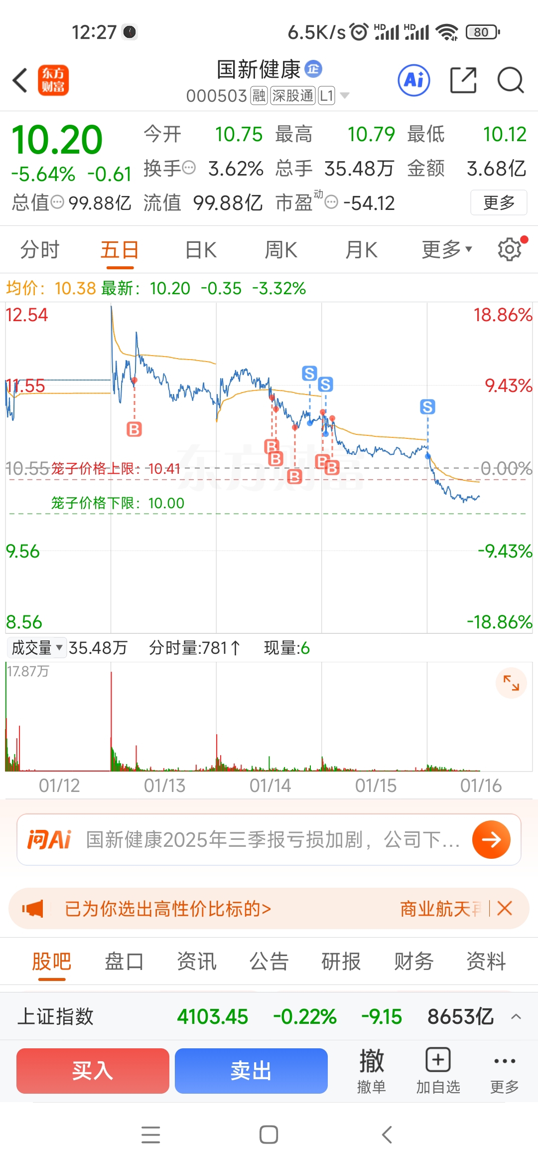 $国新健康(SZ000503)$ 这支票进来三天亏11个点血的教训 庄控不会拉升的天天阴跌 早上开盘割了