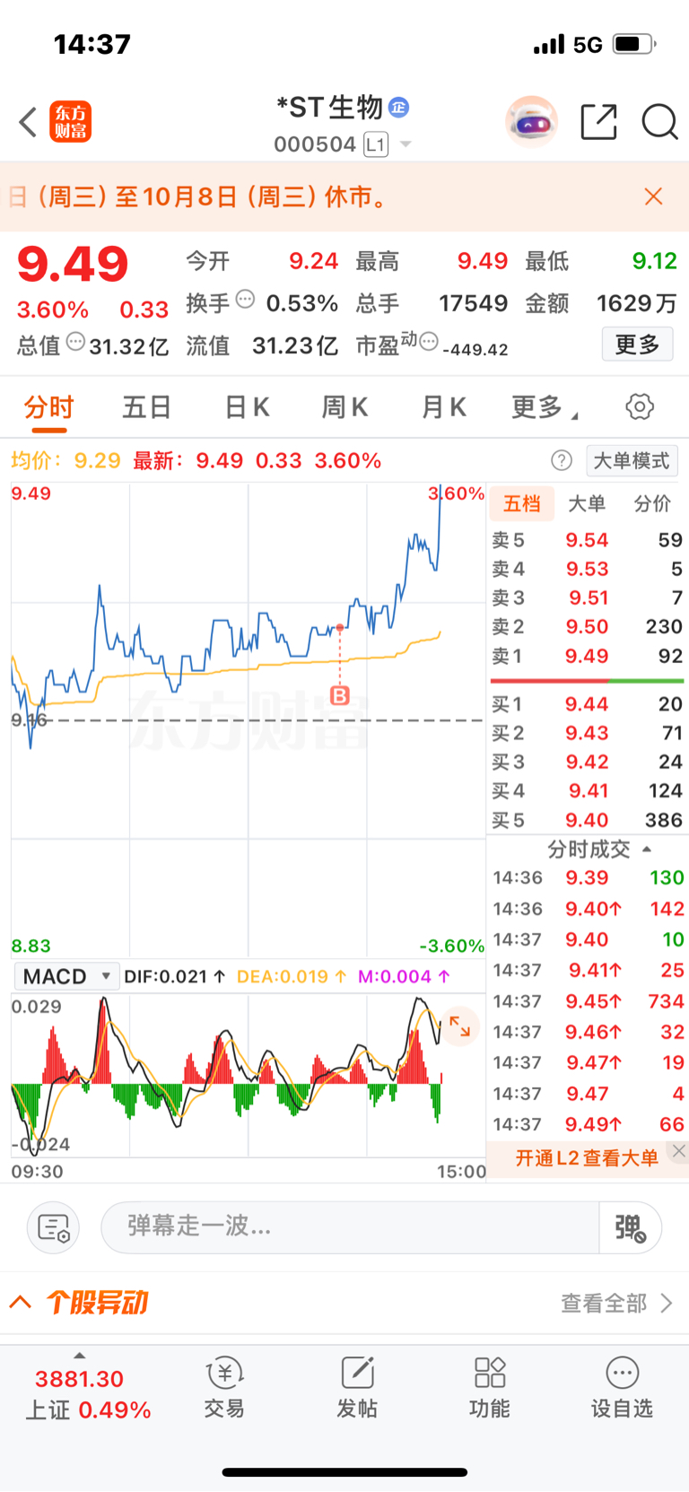$*ST生物(SZ000504)$ 这个位置可以搞一点