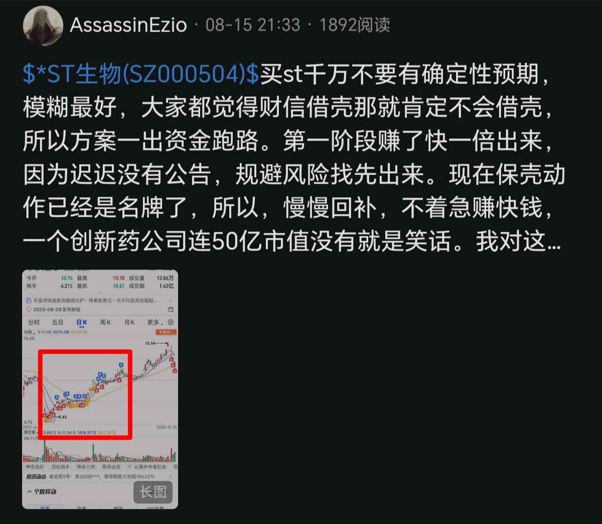 有的人看看发言就知道是什么货色,一边看好一边在里面做t,卖飞了一段,又跑上面去追博弈突破,挨打被套了,他又割了,割了后又想要更低的筹码,无非就是澄星和生物两边跑的。