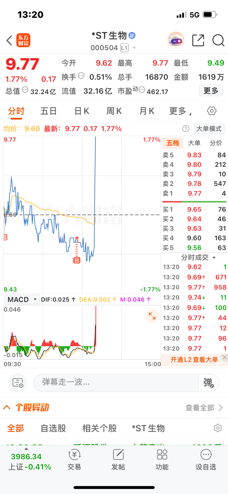 $*ST生物(SZ000504)$ 低吸、这个星期过9.8