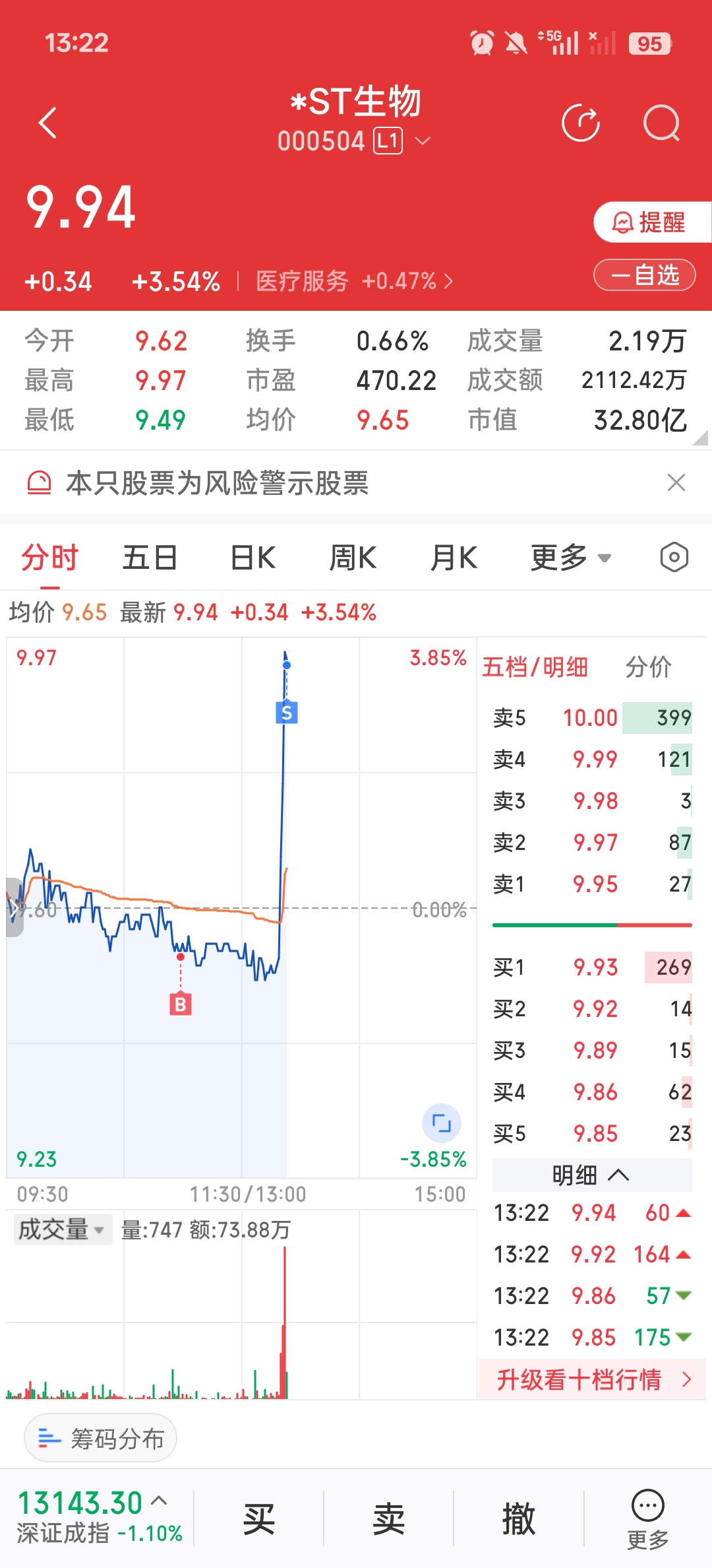 $*ST生物(SZ000504)$ 飞了好多希望明天能给机会拿